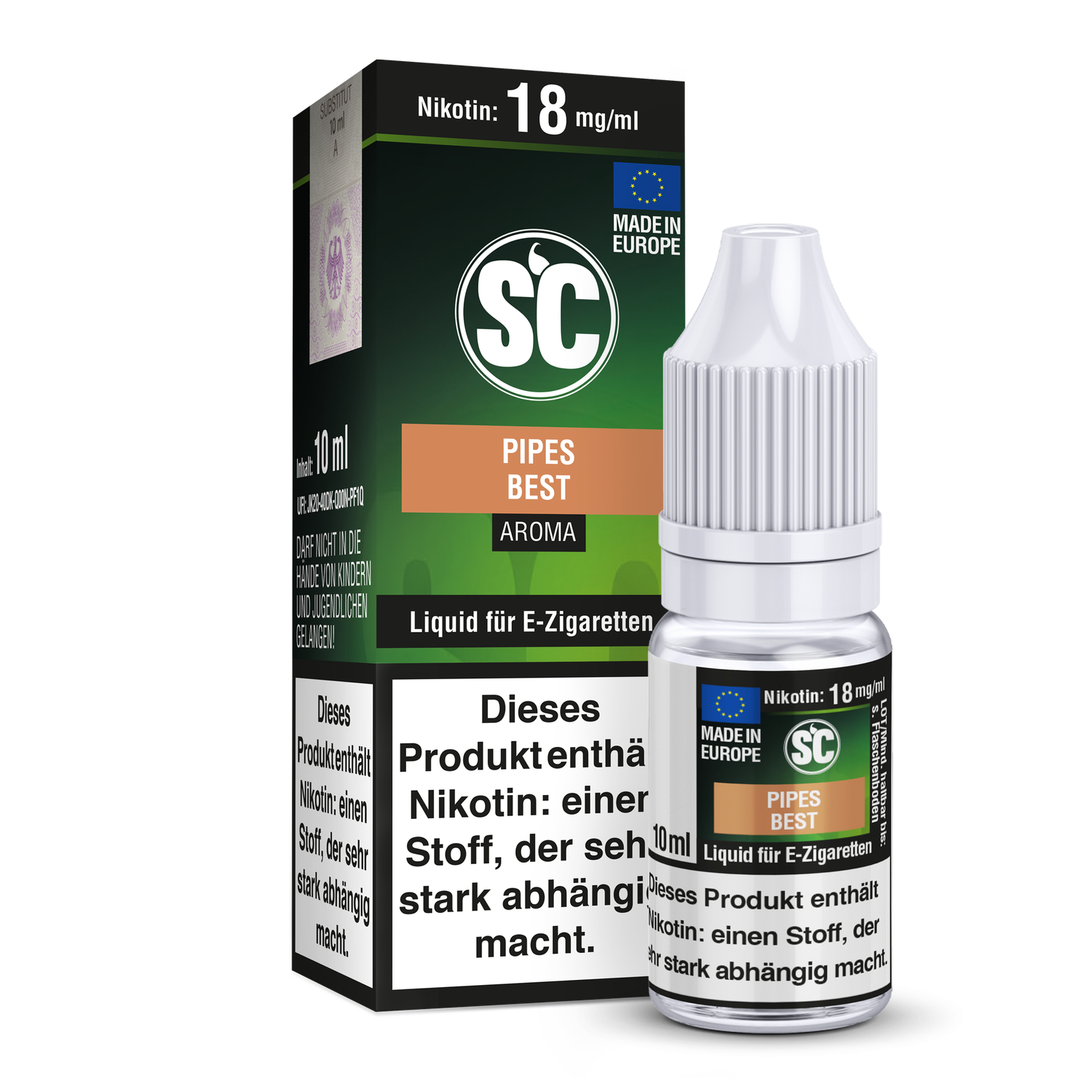 Mit jeder SC Liquid Flasche, erhalten Sie 10 ml Liquid von dem gewählten Liquid Aroma und der gewählten Stärke. Ihnen stehen insgesamt 5 Stärken mit und ohne Nikotin zu Auswahl. Das SC Pipes Best Tabak E-Zigaretten Liquid schmeckt beim Dampfen nach Tabak.